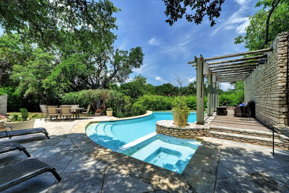 This laid-back home boasts 1960's architecture in the very best way. Texas stone construction allows it to blend in with the Hill Country of Lake Travis. Gorgeous Texas oaks and native landscaping great you as you enter the gates. Vaulted ceilings in the family room with exposed beams give you the feeling of spaciousness. There's a fireplace for cool Texas fall evenings and plenty of built-in bookshelves. Clean and fresh design in the kitchen with granite countertops, mosaic tile backsplash and loads of cabinets for storage, also features the practicality of an ice maker, trash compactor and trash recycler. All bedrooms are spacious, especially the owner's suite that features a separate tub and step in shower with a view of a discreet outdoor garden. AND NOW FOR THE BEST PART! An amazing custom designed backyard pool and hot tub oasis. Many seating areas to relax, tanning shelves in the pool and the coup de gras, a view of Lake Travis! Make 13105 Mansfield Circle your new home and call for a showing today!