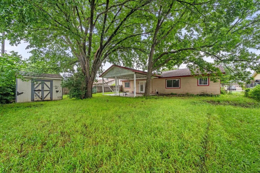 Nestled in charming Round Rock, this three-bedroom, two-bath home offers a large, wooded lot. The kitchen has white cabinets and a new dishwasher and features an eat-in dining area. The home offers a large, great room, while the floors are either ceramic tiles or laminate. The roof and all the windows were replaced in December 2023. The converted garage has carpeting and offers versatility, complete with its own exterior door and a convenient washer and dryer setup. Step outside to discover a sprawling yard embraced by mature trees. The highlight? A huge, covered patio, perfect for alfresco dining or peaceful relaxation.