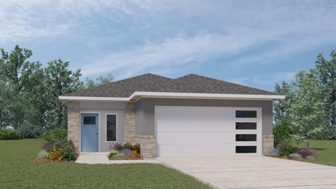 MOVE IN READY! RIGHT OFF I35! INCLUDES BLINDS AND GARAGE DOOR OPENER. The Amber II is a 1,319 sq. ft. 3 bedroom, 2 bathroom single-story home. As you enter the foyer you walk into the spacious kitchen overlooking the dining area and family room. The kitchen features Quartz countertops, decorative tile backsplash, stainless steel appliances, and a kitchen island. The private main bedroom, bedroom 1, is located off the family room and includes a huge walk-in closet and walk-in shower. The Amber also features a covered patio, full sod and irrigation. This home includes our HOME IS CONNECTED base package which includes the Alexa Voice control, Front Door Bell, Front Door Deadbolt Lock, Home Hub, Light Switch, and Thermostat.