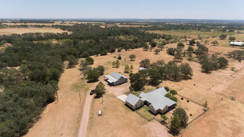 Texas Hill Country Living! This beautiful single story Home is located in desirable Fredericksburg on 6.39 acres and chock full of custom farmhouse features. The main house is a lovely 3/2.5 bath with a detached garage. The kitchen is the heart of the home with beautiful stained glass built in Hutch, custom pull out pantry, custom cabinets and pull out drawers, oversized Corian counters. Windows flood light throughout the entire house. Sit on the Oversized front and back porch to enjoy your coffee in the mornings or to watch the sunset. 4ft wood planks throughout most of the main house. Beadboard accent walls throughout the home. Beautiful glass front built ins in entry hallway. Huge laundry room with built in desk. The property has an RV storage garage with sewage, water and electric hookups. An additional 440sf bunk house apartment with full kitchen bath, living room and dining room (and porch) is attached to the RV barn. There is also a smaller barn for animal equipment and hay. NO STRs, one month lease minimums. You do not want to miss this opportunity to own a piece of Texas Hill Country! Please watch video for all the pictures.